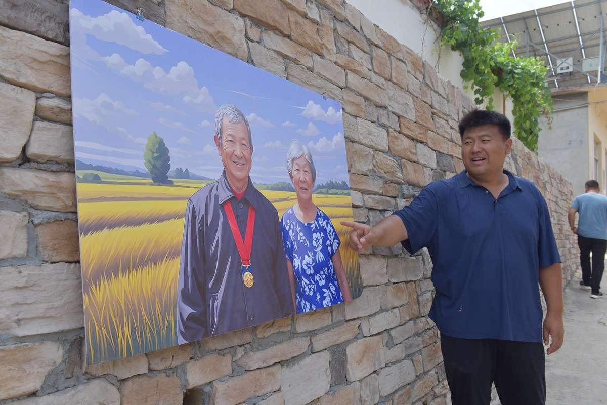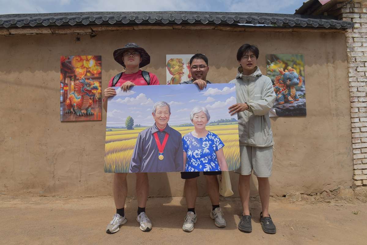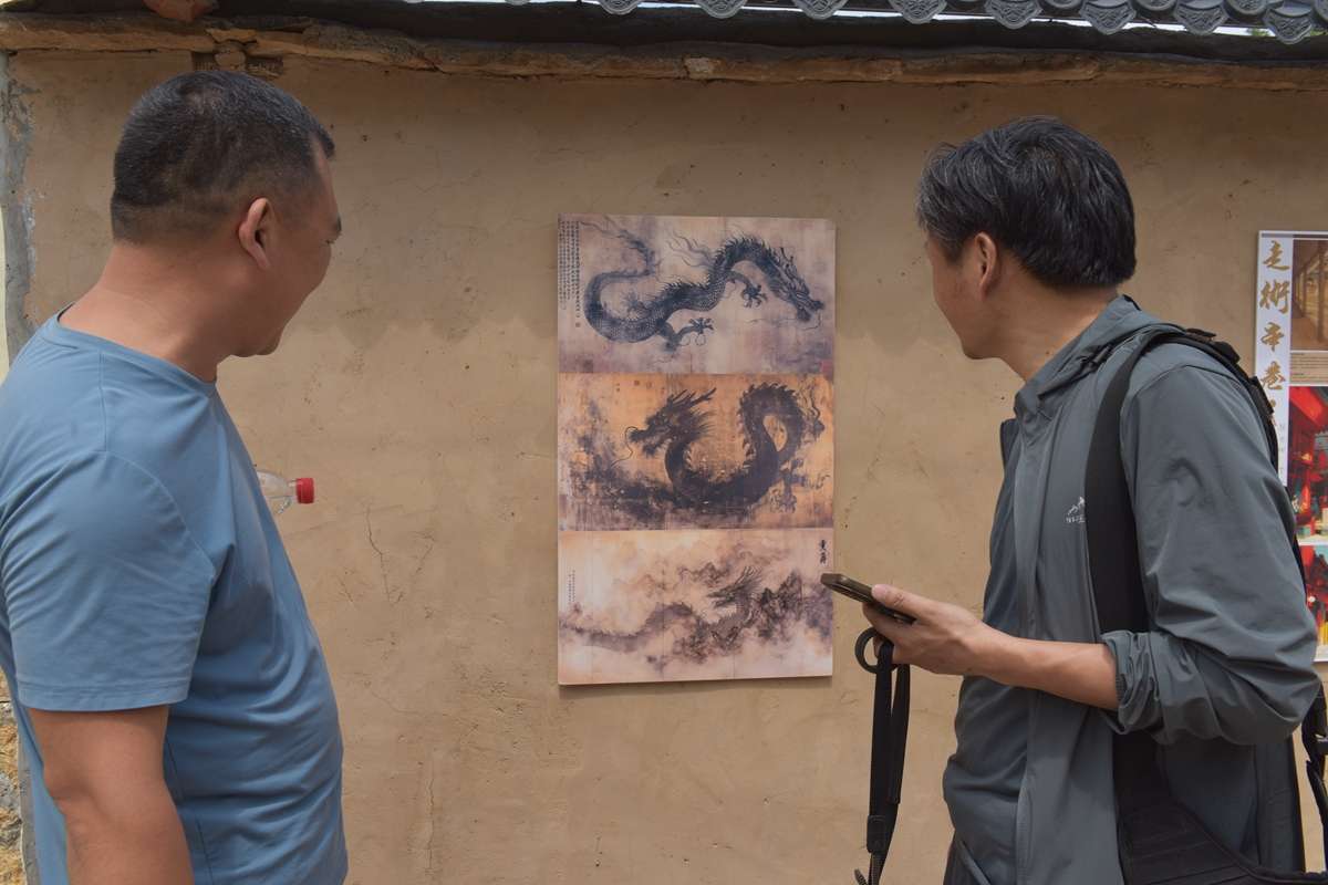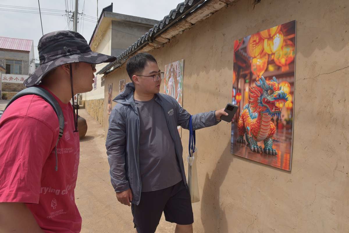 艺术节上,悬挂在道路两旁、房前屋后、麦田菜地里的“塗龙季”全国生成式人工智能艺术展、中国高校生肖设计大展历届优秀作品展、庄南山麦田摄影展等成为一大亮点,扮靓了整个小山村,村民们纷纷前来观展,从照片中寻找自己的身影,开心不已。
